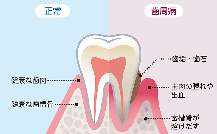歯周病は、日本人が歯を失う原因の第1位でありながら、ほとんど痛みが出ないまま進行する病気です。